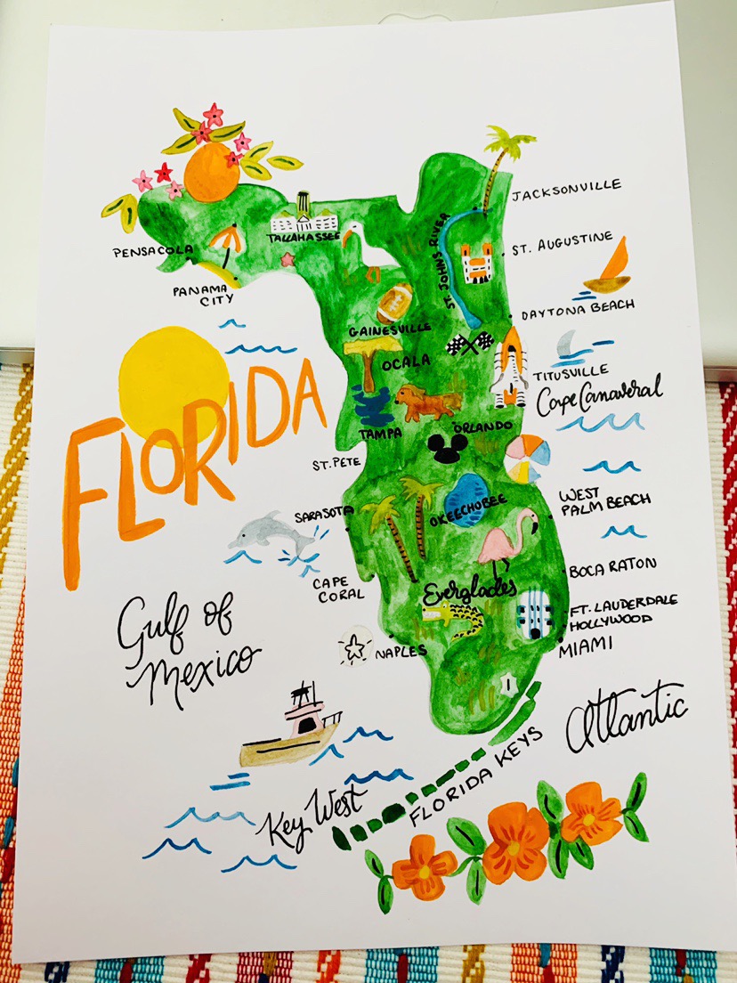 Looking back over the Easter weekend it was fairly choka but was definitely good fun! Again the next week was busy busy busy with work so not much to recap there. The last weekend in April was fairly chilled and I finally was able to get a little bit of painting done. To add to my collection of places we’ve visited, I did one of Florida – inspo was from our recent trip to Florida which seems like a life time ago now. What do you think?