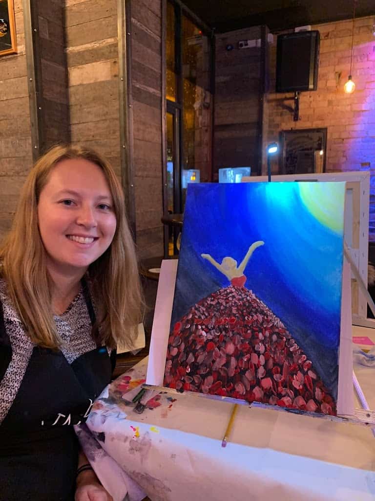 Earlier this month I caught up with a friend from my old work. We decided to do something different so went for a mezze platter at Comptoir Libanais then went to a local pub and did a painting class with Art Night. I’ve never really painted with acrylic paint but it was good fun! You get given a stencil for the outline of the main bit of the painting and then get guided through step by step for 2 hours. We grabbed a g&t and got stuck in!