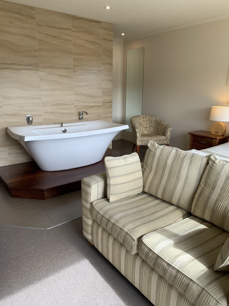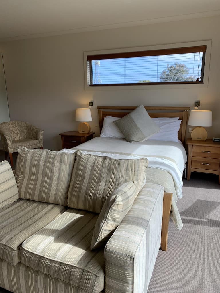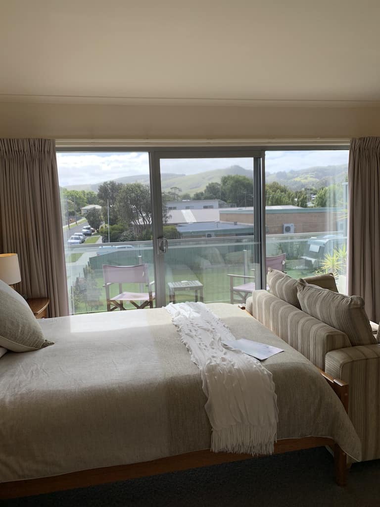 Driving through Apollo Bay we knew we’d love it and it was the perfect stop over for the night. First stop was our B&B. We had originally planned to stay at an AirBnB but they cancelled after we booked which worked out perfect for us because we came across this B&B which was dreamy! It’s called Captains at the Bay and It was a bit of luxury for us – I mean just look at the free standing bath, views, shower – it was all amazing! We also got breakfast included the next morning which was delish!