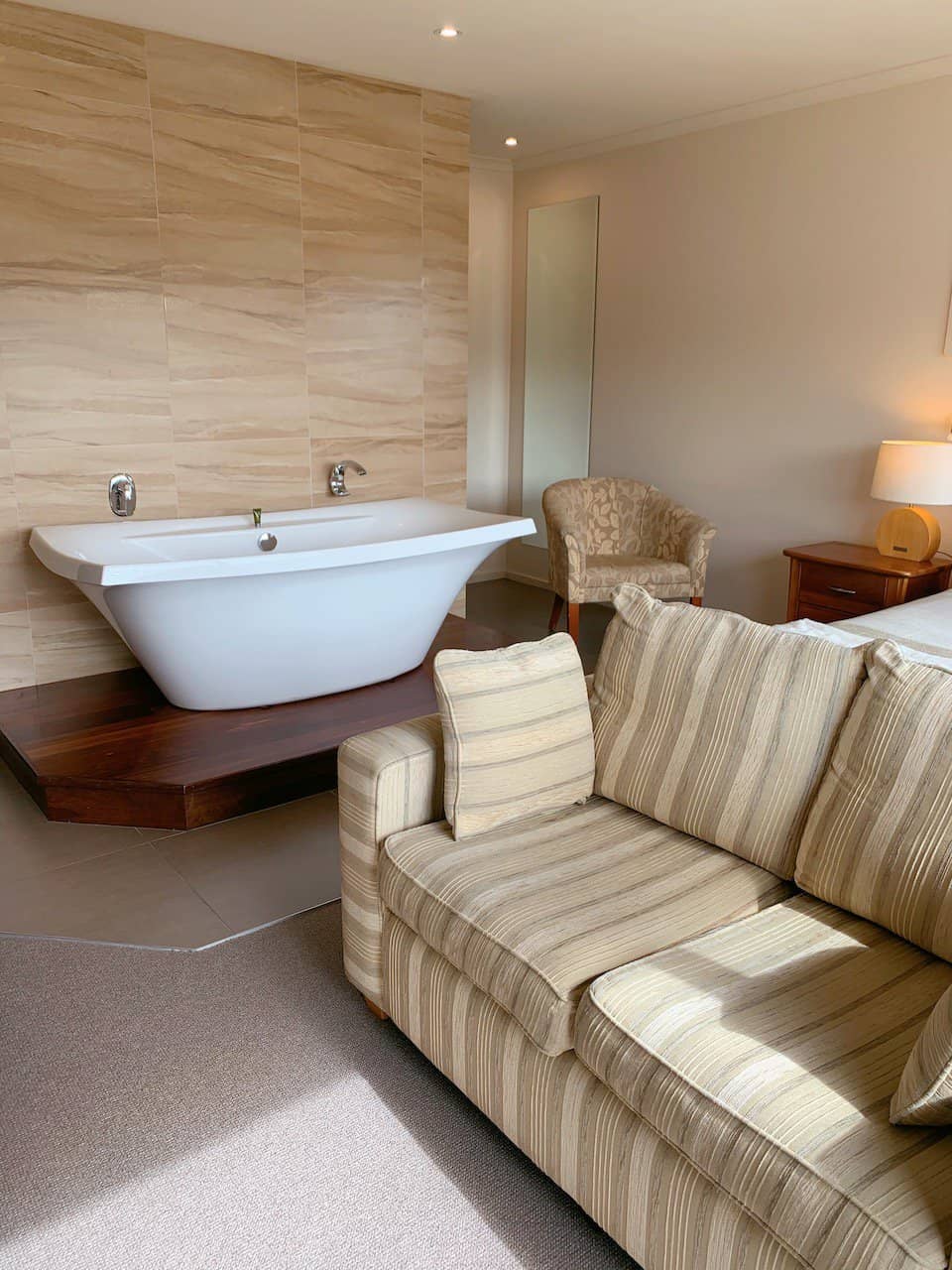 We decided to spend a little more and stay at this B&B for a little bit of luxury for 1 night. We stayed in ‘The Bridge’ room which was just perfect! There was a huge bath in the room along with a luxurious walk in shower and a balcony. The owners were lovely and had some great suggestions for dinner in town along with places to go the following day for our trip along the Great Ocean Road. The king size bed was divine and I most certainly had a bubble bath to chill that evening! The breakfast in the morning was delish – there was a cold breakfast bar and you could order a hot breakfast of eggs and toast. Yum! Again, we’d have absolutely no reservations going back and staying here.
